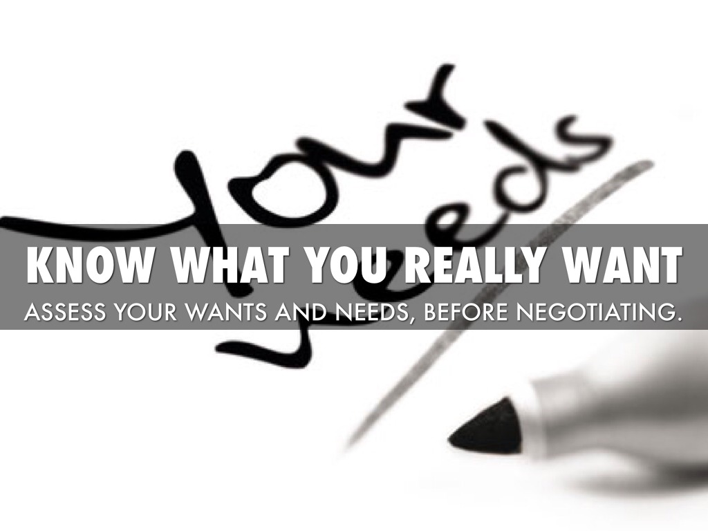 ASSESS YOUR WANTS AND NEEDS, BEFORE NEGOTIATING.
