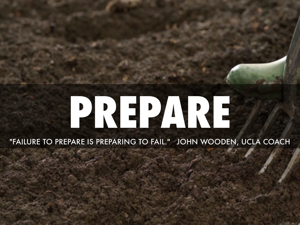 "FAILURE TO PREPARE IS PREPARING TO FAIL." JOHN WOODEN, UCLA COACH