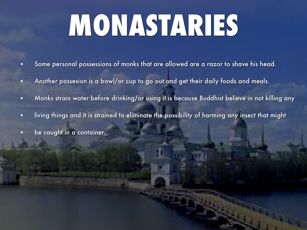 Some personal possessions of monks that are allowed are a razor to shave his head.