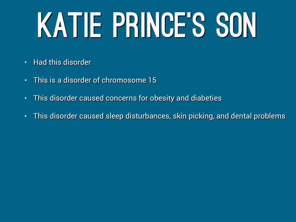 is a disorder (present from birth) .It affects many parts of the body. People with this condition are obese, have reduced muscle tone and mental ability, and have sex glands that produce little or no hormones.