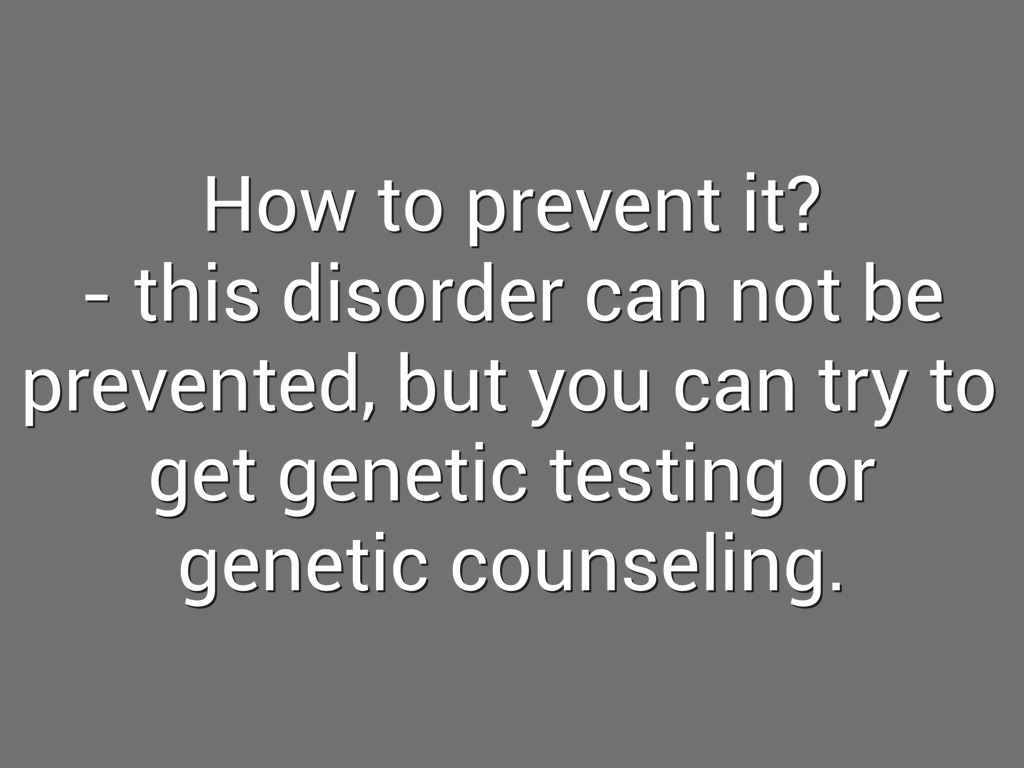 - this disorder can not be prevented, but you can try to get genetic testing or genetic counseling.