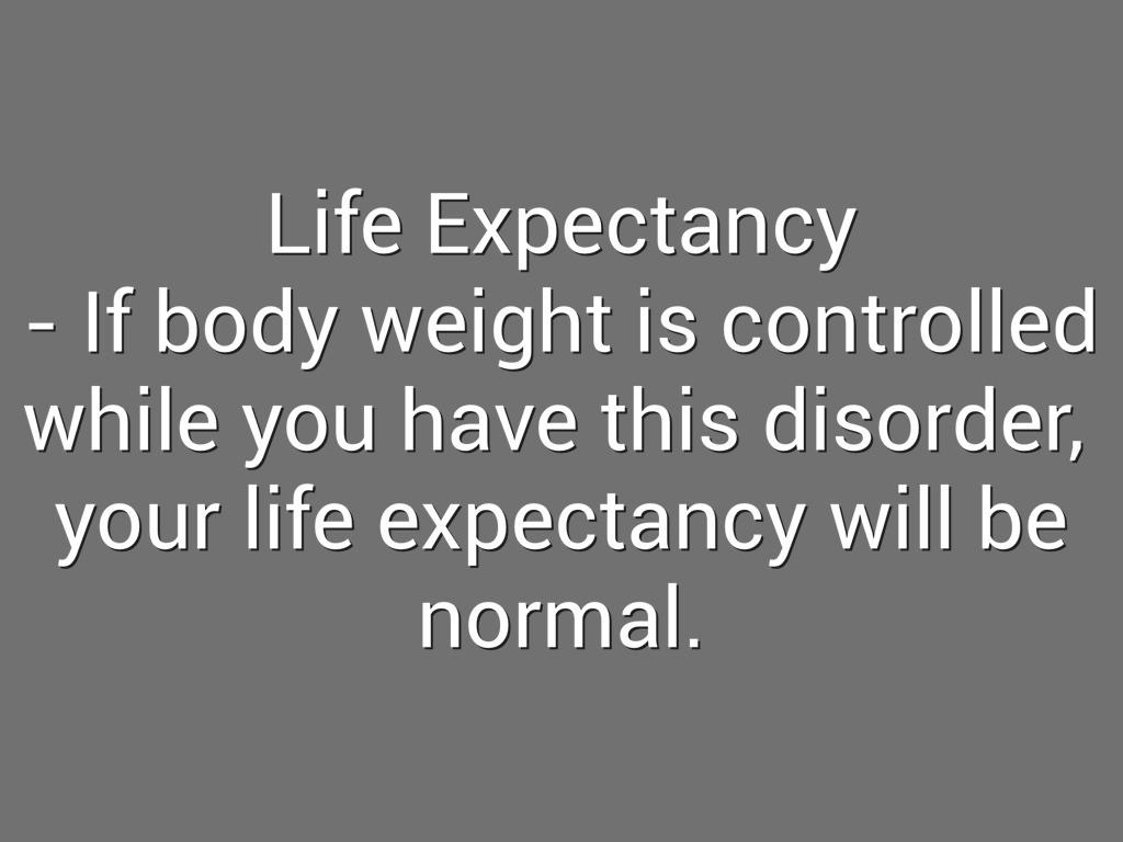 - If body weight is controlled while you have this disorder, your life expectancy will be normal.