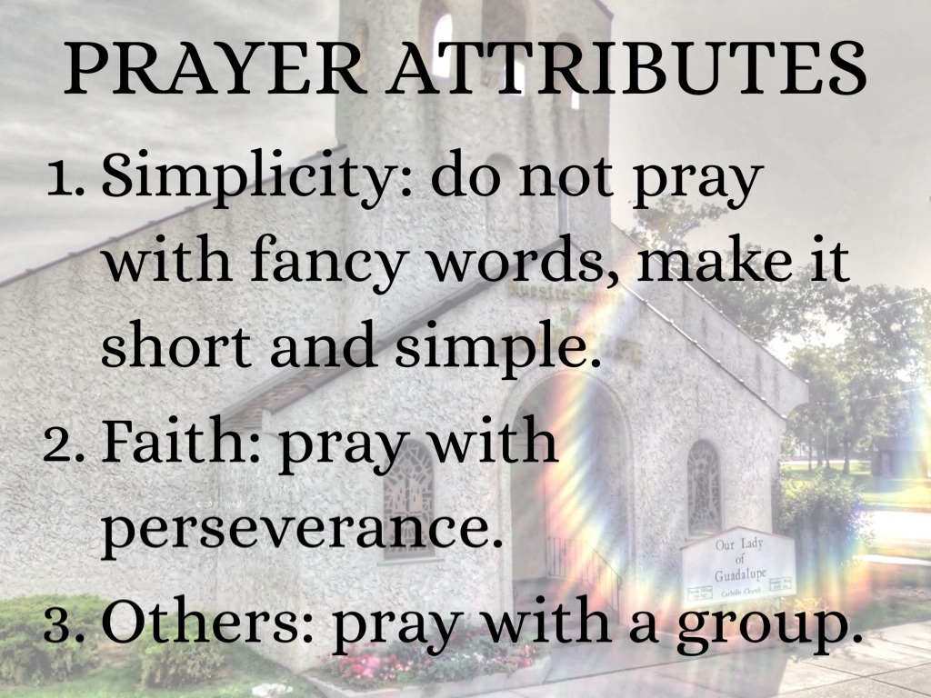 Simplicity: do not pray with fancy words, make it short and simple.