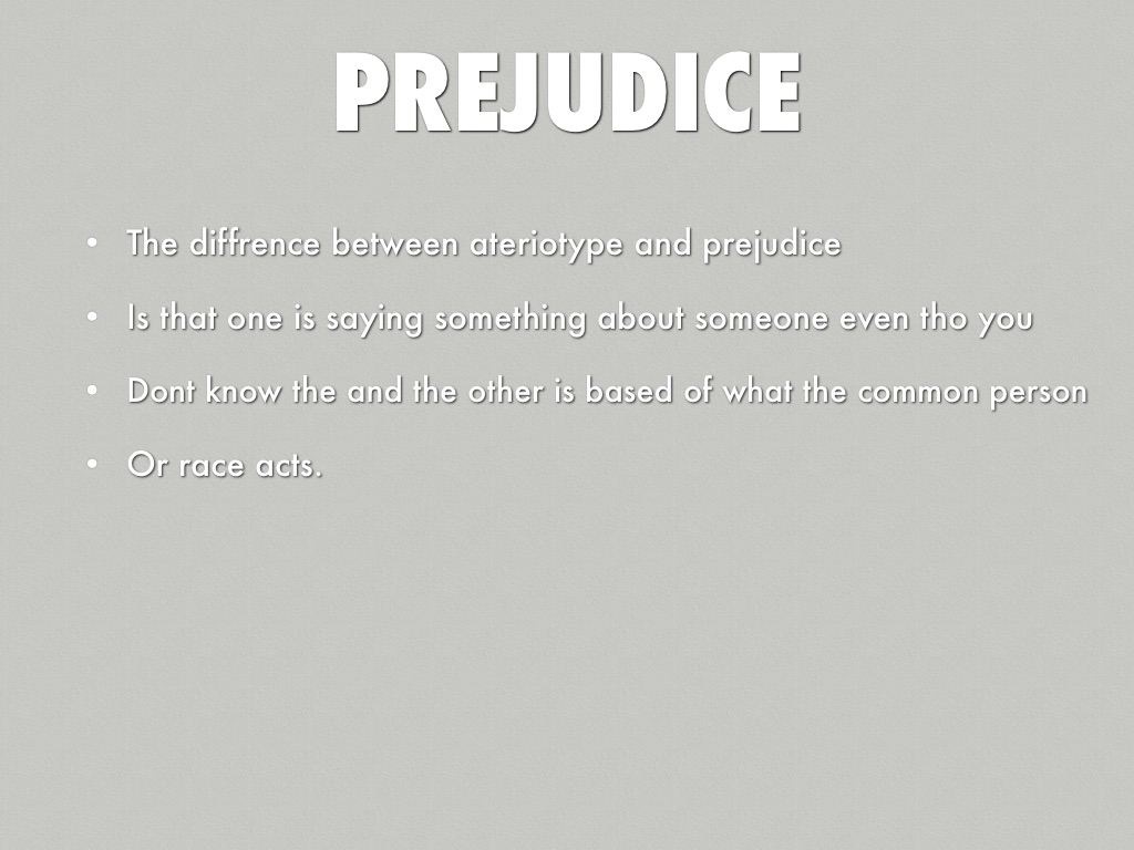 IS SAYING THAT ONE RACE IS BETTER THEN THE OTHER PREJUDICE IS BASEING