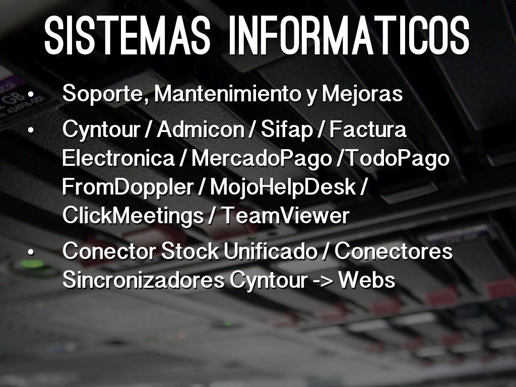 Cyntour / Admicon / Sifap / Factura Electronica / MercadoPago /TodoPago FromDoppler / MojoHelpDesk / ClickMeetings / TeamViewer