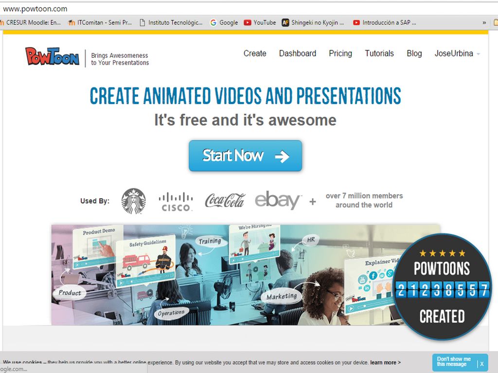 PowToon tiene en youtube un canal donde se pueden encontrar muchos vídeos realizados con este programa