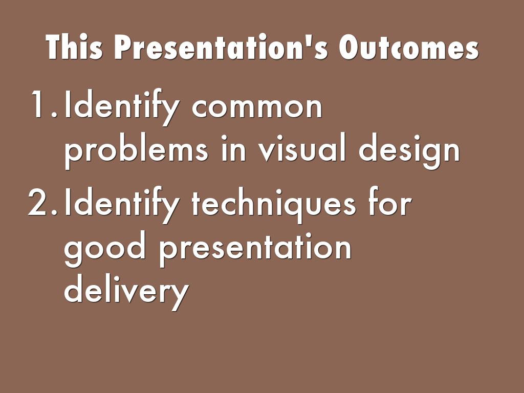 - Identify techniques for good presentation delivery