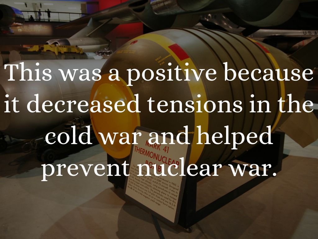 This was a positive because it decreased tensions in the cold war and helped prevent nuclear war.