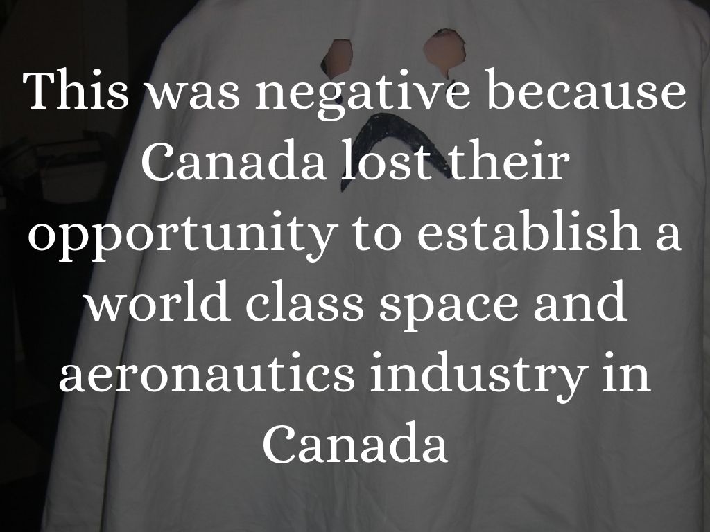 This was negative because Canada lost their opportunity to establish a world class space and aeronautics industry in Canada