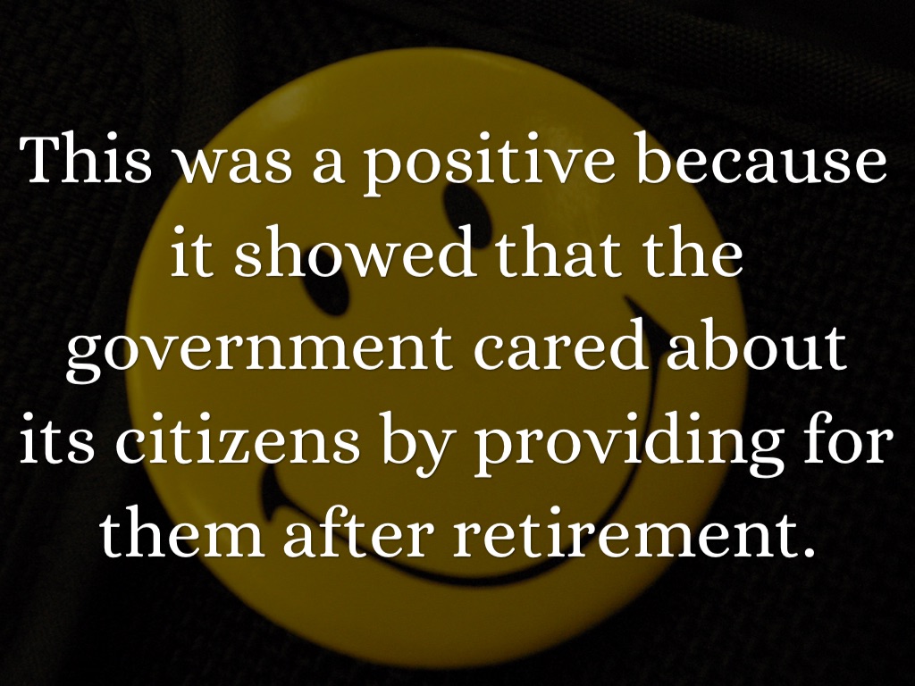 This was a positive because it showed that the government cared about its citizens by providing for them after retirement.
