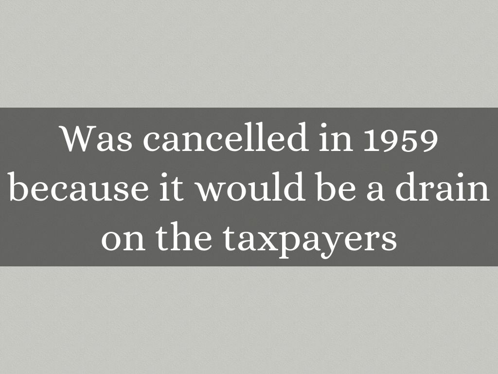 Was cancelled in 1959 because it would be a drain on the taxpayers