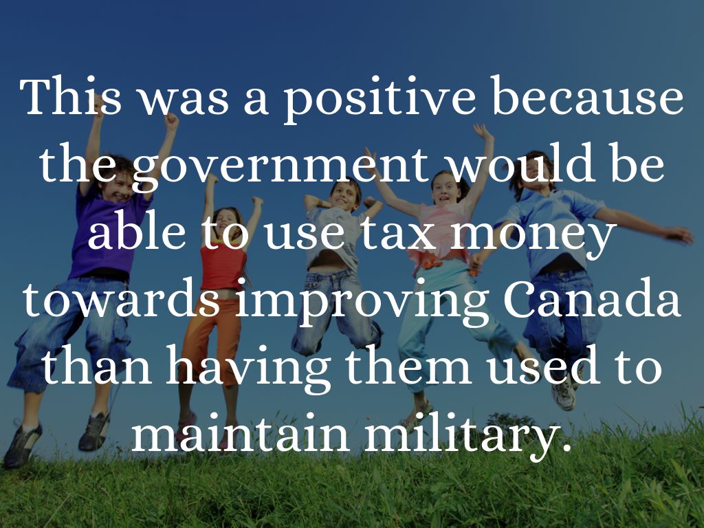 This was a positive because the government would be able to use tax money towards improving Canada than having them used to maintain military.