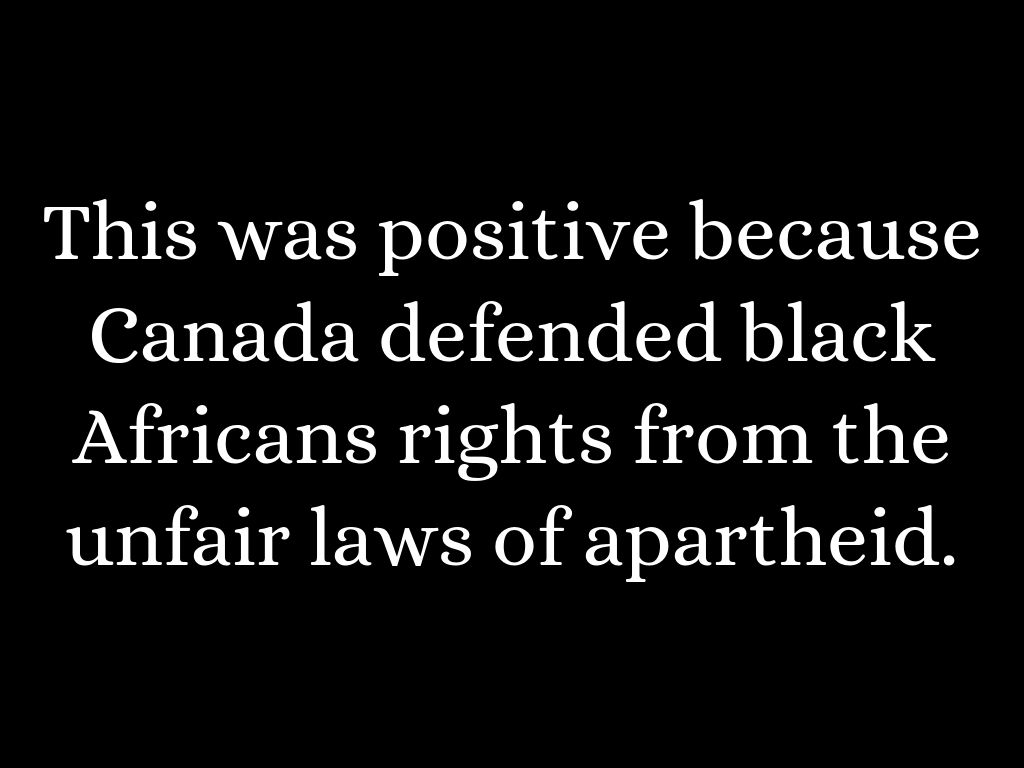 This was positive because Canada defended black Africans rights from the unfair laws of apartheid.