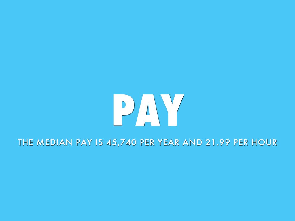 THE MEDIAN PAY IS 45,740 PER YEAR AND 21.99 PER HOUR