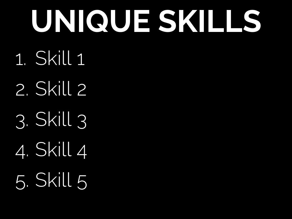 What are 3-5 unique skills that you bring to the table? You can highlight them here. (Bonus tip: If you're on LinkedIn, review what your contacts have endorsed you for to get ideas.)