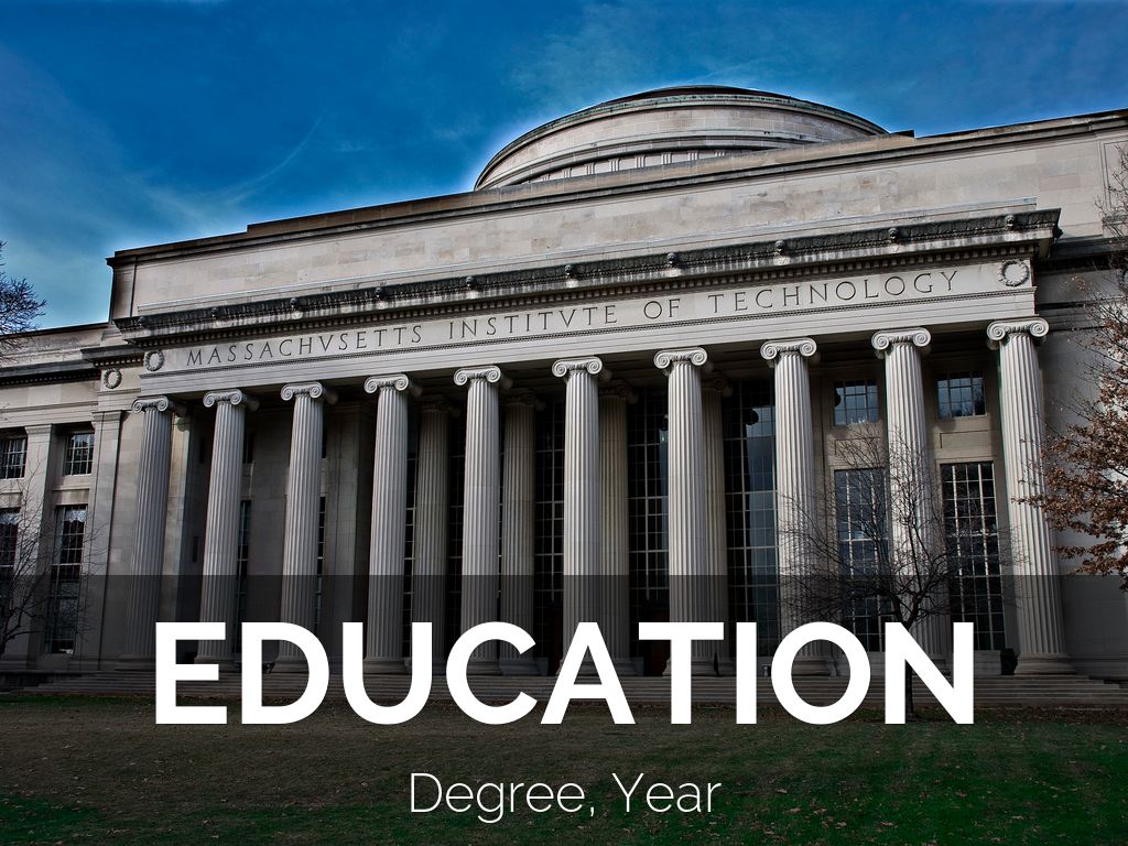 Again, you can choose how much detail you want to include (year is optional), or add multiple slides to highlight different degrees, but be sure to call out your academic achievements.
