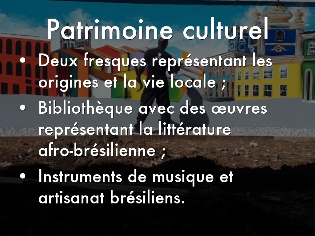 Des équipements axés sur la découverte des arts et de la culture brésiliens, tels que la capoeira, la musique, la danse et la littérature ;