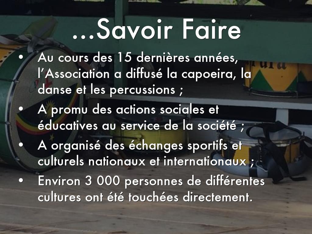 Au cours des 15 dernières années, l’Association a diffusé la capoeira, la danse et les percussions ;