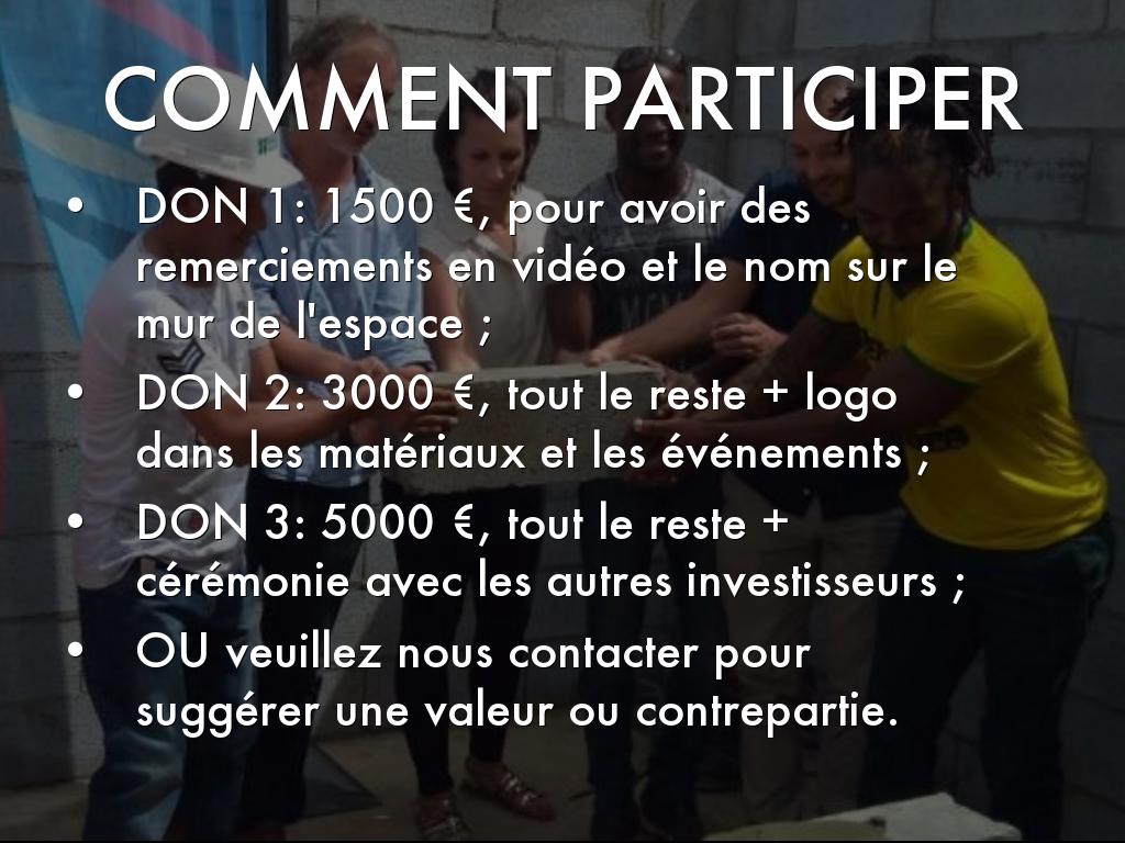 DON 1: 1500 €, pour avoir des remerciements en vidéo et le nom sur le mur de l'espace ;