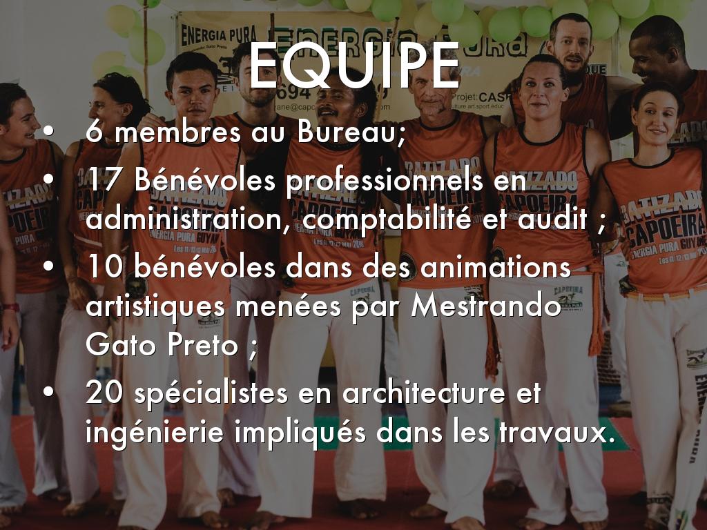 10 bénévoles dans des animations artistiques menées par Mestrando Gato Preto ;