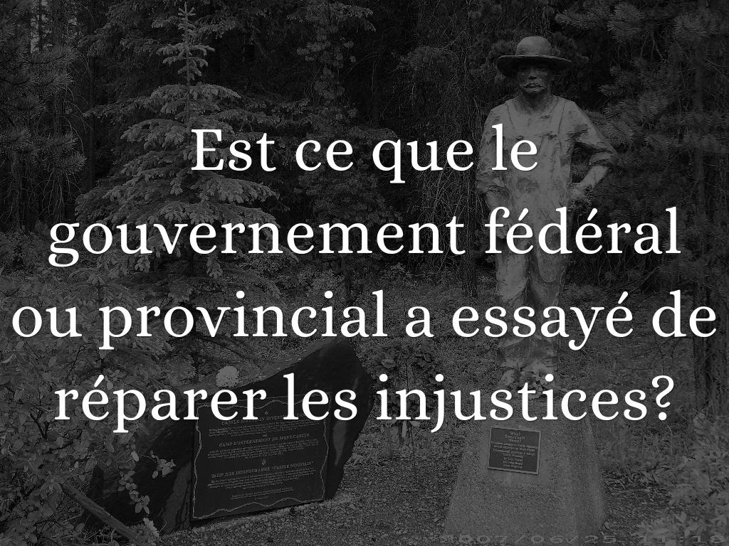 Est ce que le gouvernement fédéral ou provincial a essayé de réparer les injustices?