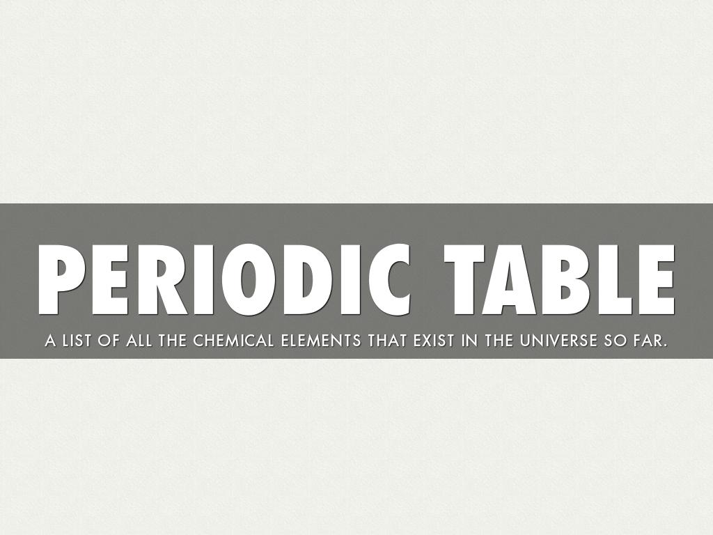 The periodic table of elements is a list or picture of all of the elements that humans have discovered.