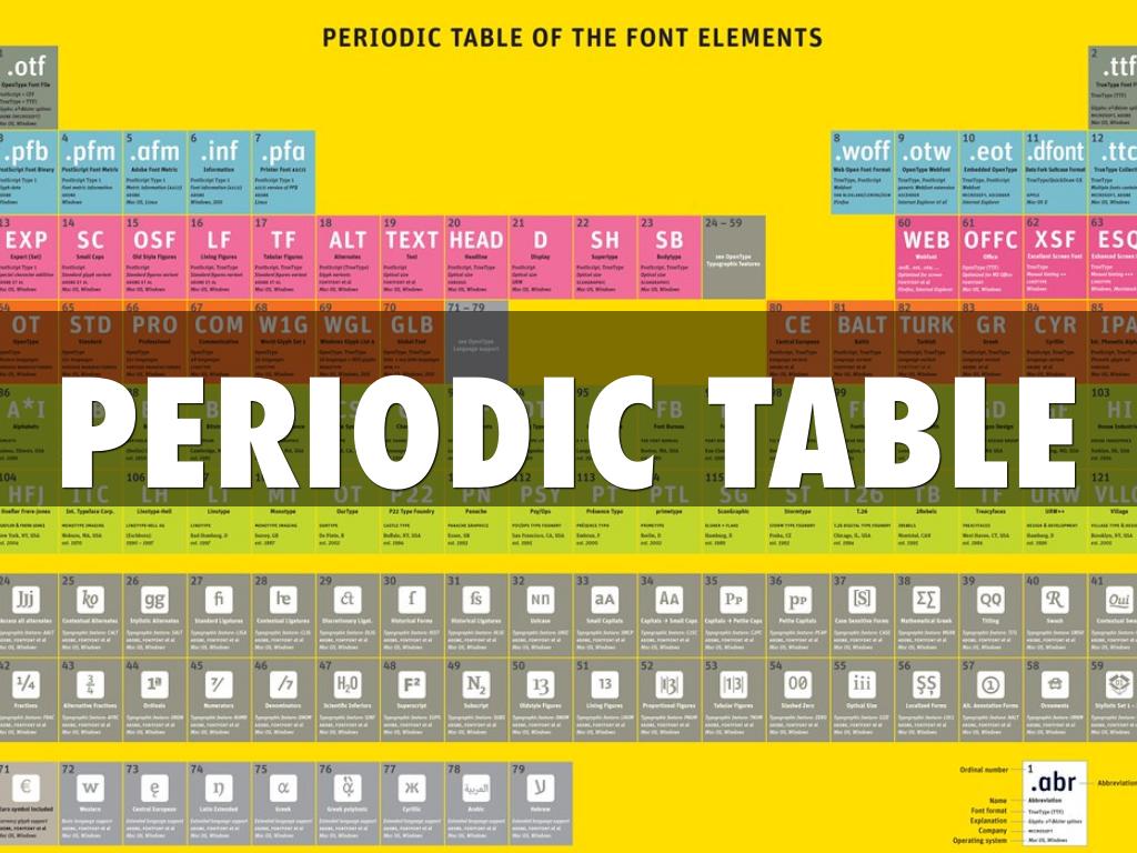 The periodic table is a list of all the chemical elements that exist in the universe that have been discovered by humans so far. The periodic table categorizes and organizes elements according to the properties of their atoms.