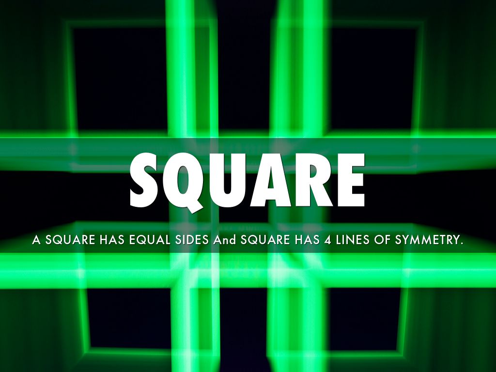 A SQUARE HAS EQUAL SIDES And SQUARE HAS 4 LINES OF SYMMETRY.