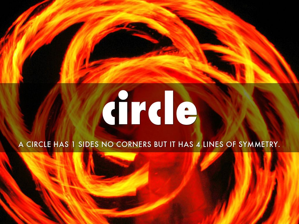 A CIRCLE HAS 1 SIDES NO CORNERS BUT IT HAS 2 LINES OF SYMMETRY.