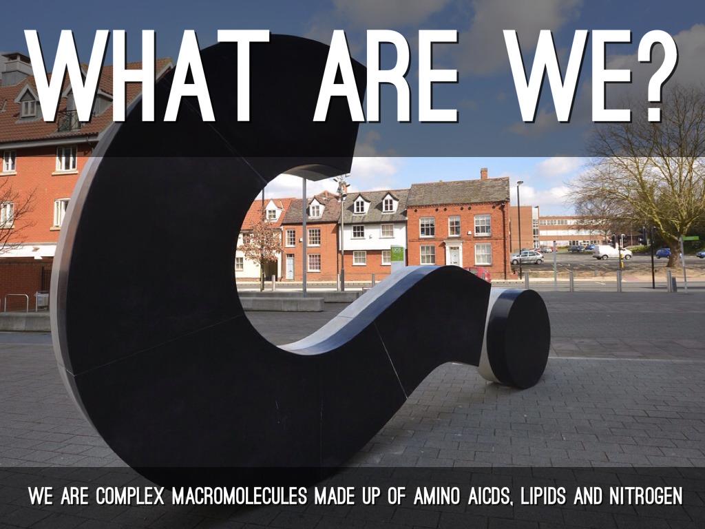 WE ARE COMPLEX MACROMOLECULES MADE UP OF AMINO AICDS, LIPIDS AND NITROGEN