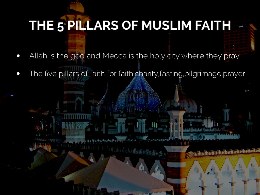 The five pillars of faith for faith,charity,fasting,pilgrimage,prayer