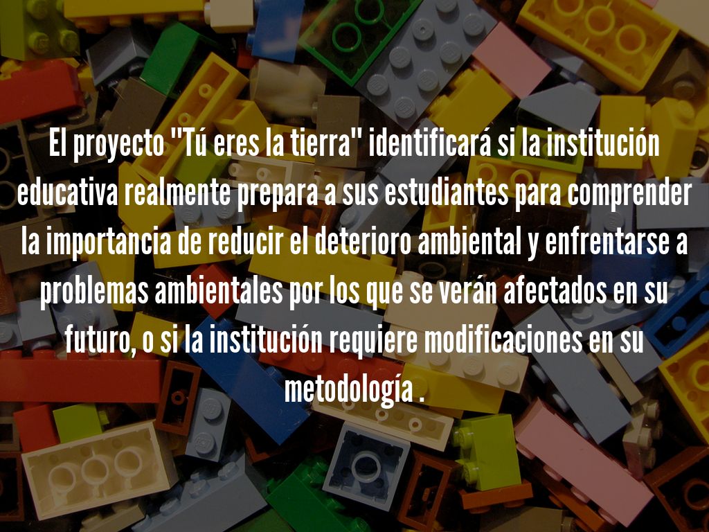 El proyecto ""Tú eres la tierra"" identificará si la institución educativa realmente prepara a sus estudiantes para comprender la importancia de reducir el deterioro ambiental y enfrentarse a problemas ambientales por los que se verán afectados en su futuro, o si la institución requiere modificaciones en su metodología .