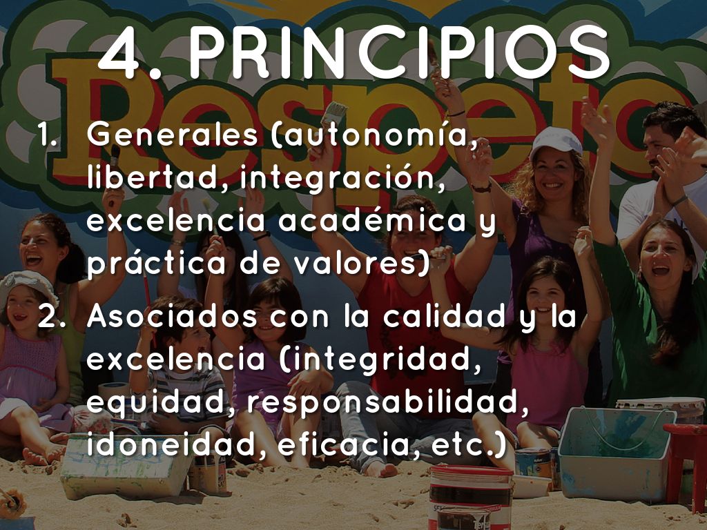 • Generales (autonomía, libertad, integración, excelencia académica y práctica de valores)