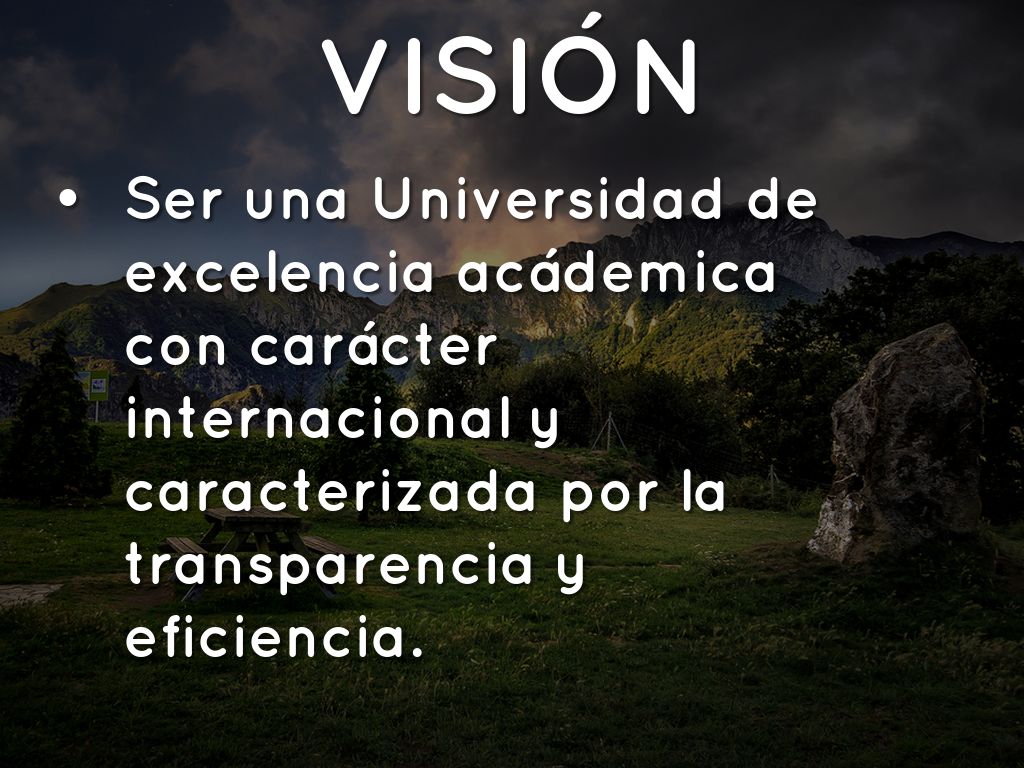 • Ser una Universidad de excelencia acádemica con carácter internacional y caracterizada por la transparencia y eficiencia.
