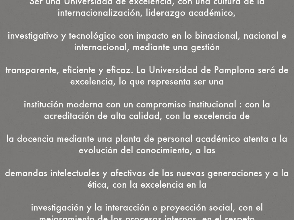Ser una Universidad de excelencia, con una cultura de la internacionalización, liderazgo académico,