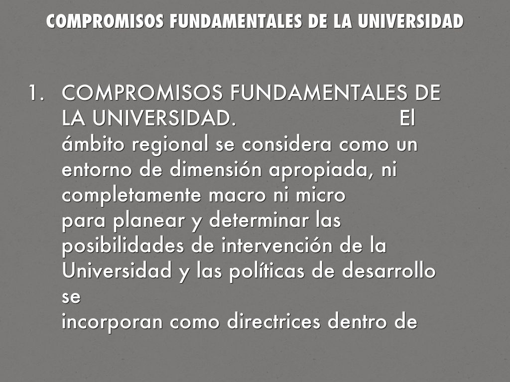 - COMPROMISOS FUNDAMENTALES DE LA UNIVERSIDAD. El ámbito regional se considera como un entorno de dimensión apropiada, ni completamente macro ni micro