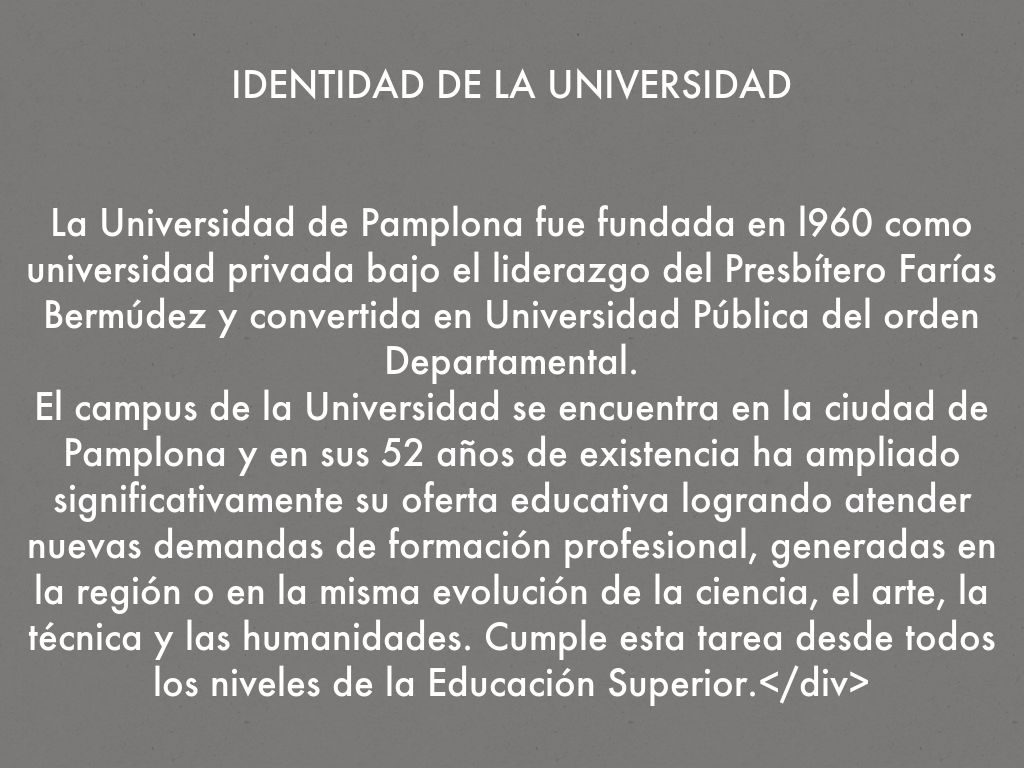 La Universidad de Pamplona fue fundada en l960 como universidad privada bajo el liderazgo del Presbítero Farías Bermúdez y convertida en Universidad Pública del orden Departamental.