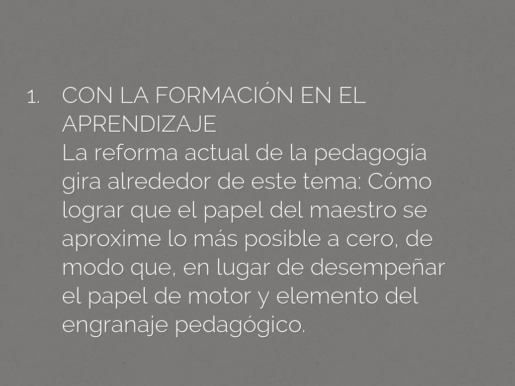 La reforma actual de la pedagogía gira alrededor de este tema: Cómo lograr que el papel del maestro se