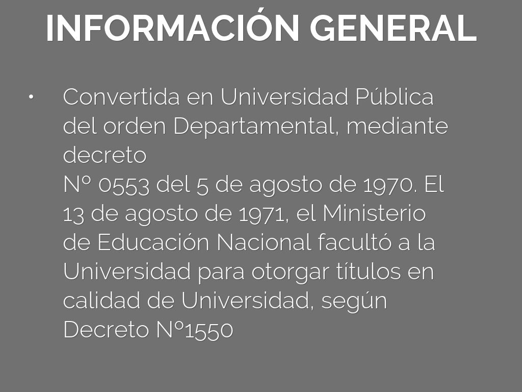 Convertida en Universidad Pública del orden Departamental, mediante decreto