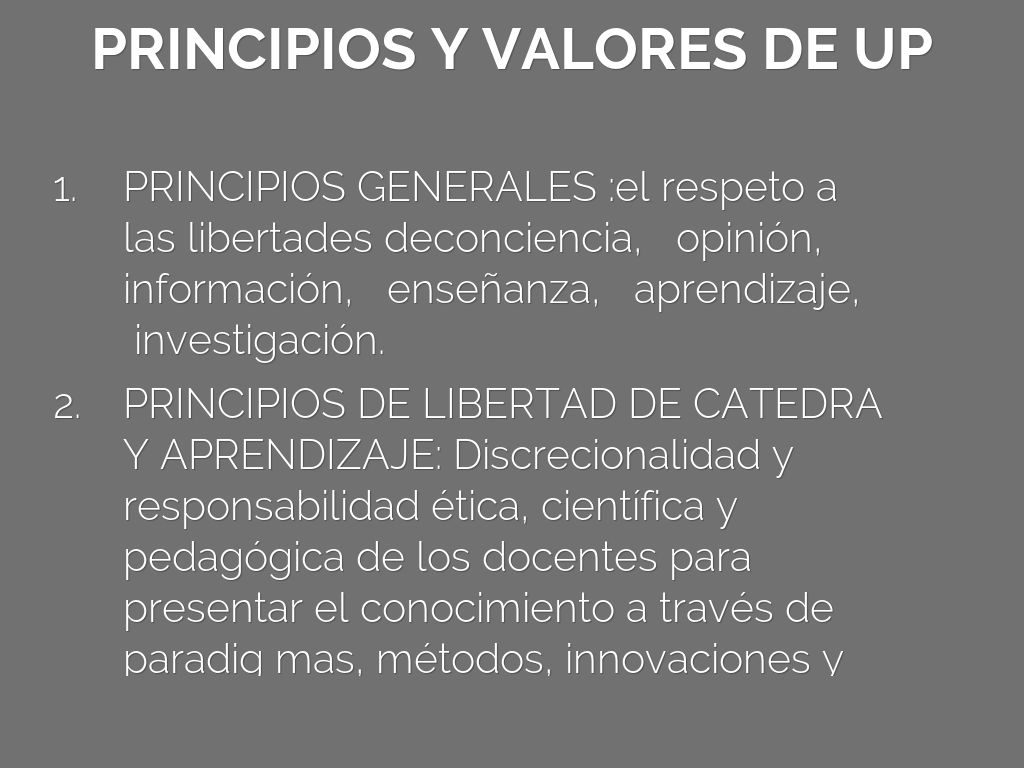 PRINCIPIOS GENERALES :el respeto a las libertades deconciencia, opinión, información, enseñanza, aprendizaje, investigación.
