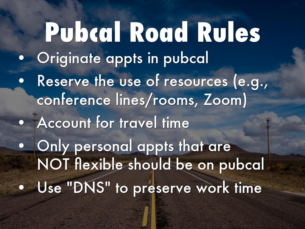 - Only personal appts that are NOT flexible should be on pubcal
