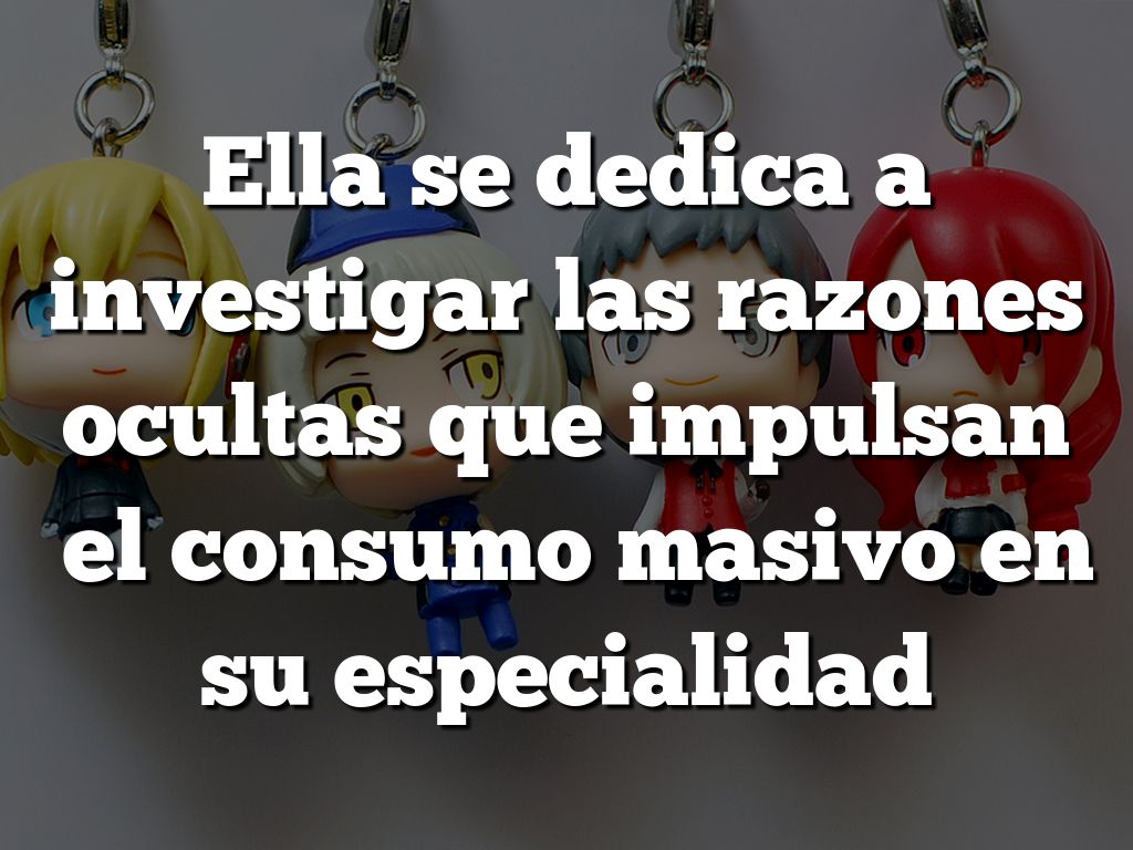 Ella se dedica a investigar las razones ocultas que impulsan el consumo masivo en su especialidad