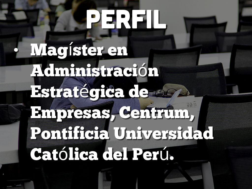 Magíster en Administración Estratégica de Empresas, Centrum, Pontificia Universidad Católica del Perú.