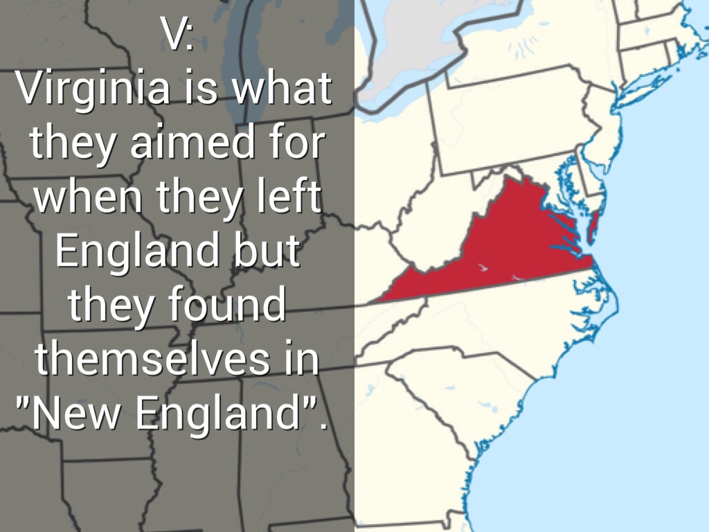 Virginia is what they aimed for when they left England but they found themselves in "New England".