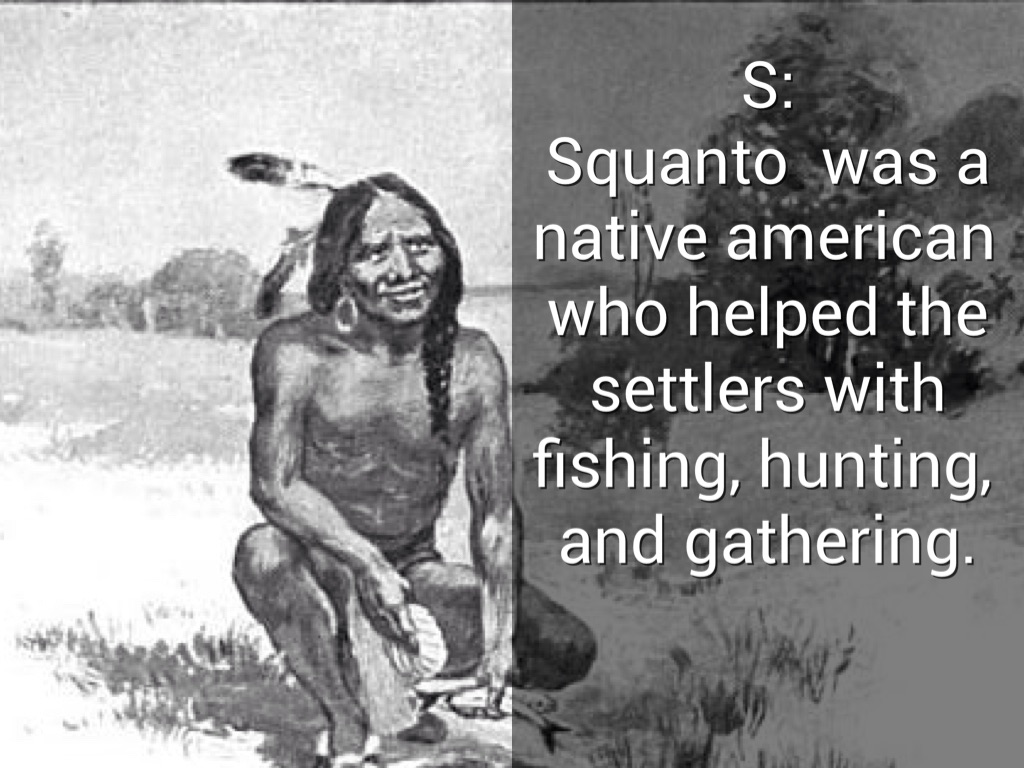 Squanto was a native american who helped the settlers with fishing, hunting, and gathering.