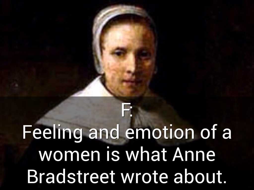 Feeling and emotion of a women is what Anne Bradstreet wrote about.