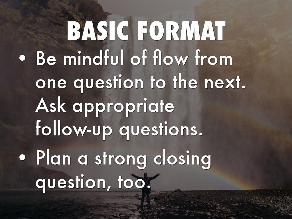 • Be mindful of flow from one question to the next. Ask appropriate follow-up questions.