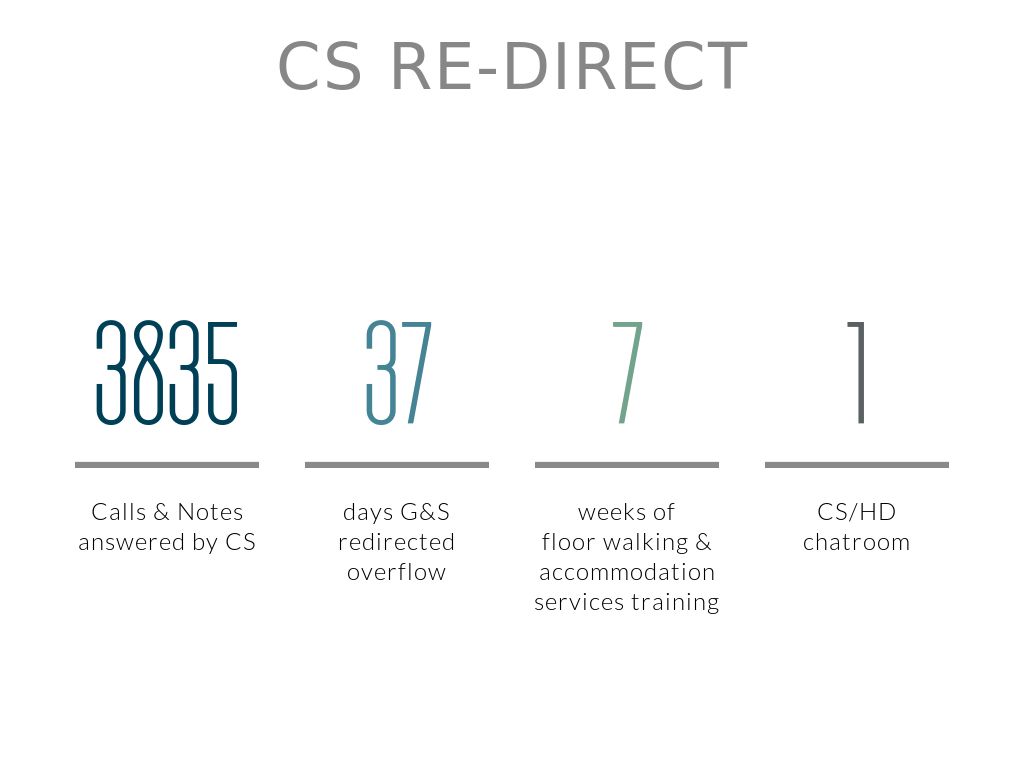 ADF - cs redirect, floorwalker, acccomodation, current %- Fel (10-15 mins)