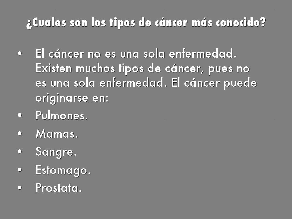 - El cáncer no es una sola enfermedad. Existen muchos tipos de cáncer, pues no es una sola enfermedad. El cáncer puede originarse en: