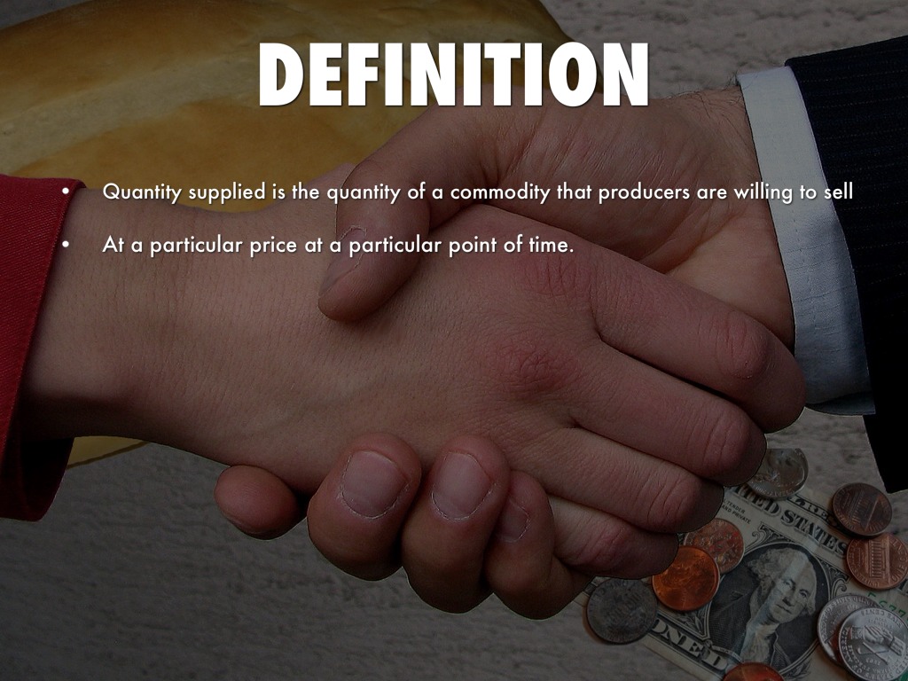 Quantity supplied is the quantity of a commodity that producers are willing to sell
